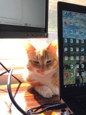Happy Pictures Posted on December 13, 2020 by lisamackinder My sister’s co-worker… Sofia is the perfect office mate: She punches in the same time every day and doesn’t talk too much. The only red mark on job performance? She once scampered across the keys and sent out a corporate-wide email of gibberish. Share this: Click to share on X (Opens in new window) X Click to share on Facebook (Opens in new window) Facebook Like Loading... Related