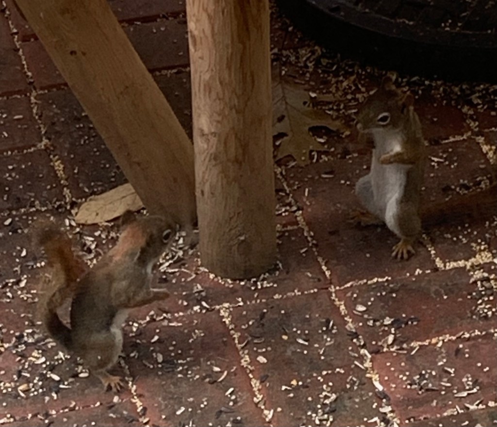 Happy Pictures Posted on December 26, 2021 by lisamackinder The Face Off Two siblings who come to our patio, Cinnamon and Nutmeg, often get into brawls about sharing seeds. Share this: Click to share on X (Opens in new window) X Click to share on Facebook (Opens in new window) Facebook Like Loading... Related
