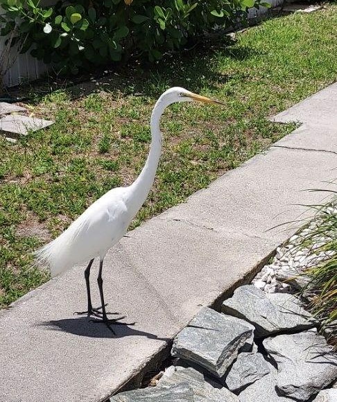 Not too much conversation with this guy. My mother-in-law found her feathered friend standing and staring like this for a good five minutes. Finally, she went up and asked what he was looking at. He looked at her for a bit and then strolled away.